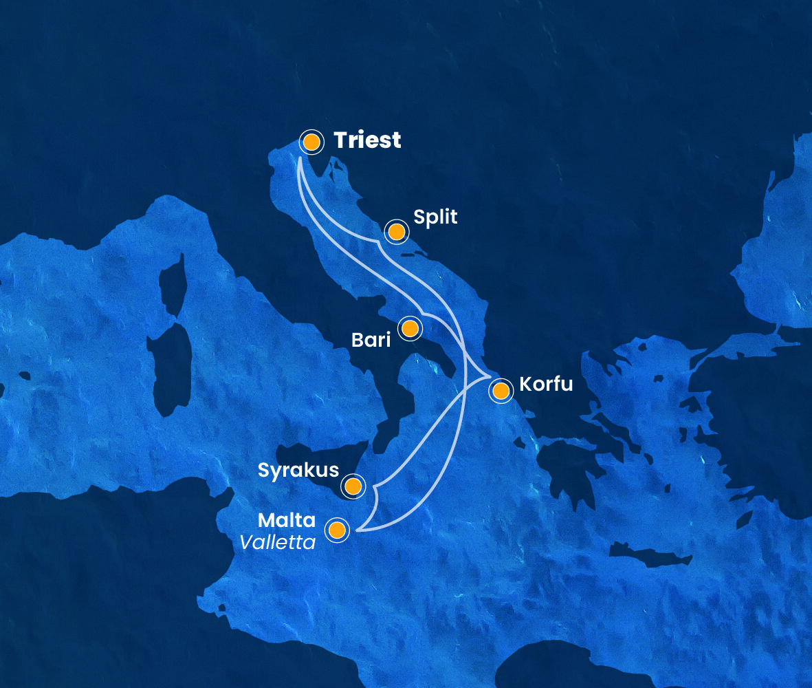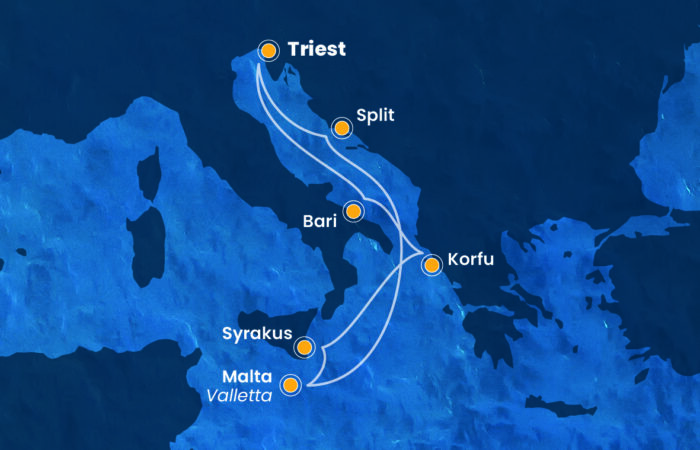 nach Korfu, Sizilien & Malta ab/bis Triest